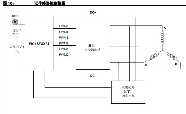 通过测量反向电动势确定转自位置 增加反电动势过零检测电路 也可以通过定子绕组产生的反感生电动势来检测转子的位置,而省去位置传感器,但是电机启动时,转速太小,反感生电动势信号太小而无法检测 反电动势过零检测 检测换相点