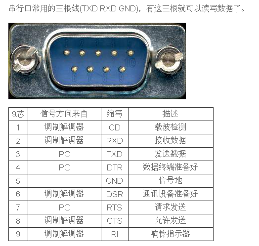 串行口常用的三根线 TXD RXD GND,有这三根就可以读写数据了,对应管脚 2、3、5