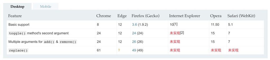 所以说jQuery快速选择DOM节点的优势已经不存在了。 2.方便操作DOM元素的API 可以方便操作DOM元素的API,比如addClass 、removeClass 、toggleClass。现在原生JS也得到了支持,这个API叫做classList。