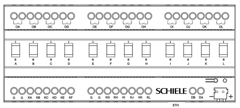 | OA~OL | 12路开关输出,每路两个接线端子,一个输入一个输出,比如可以一个接火线,一个接电灯 |